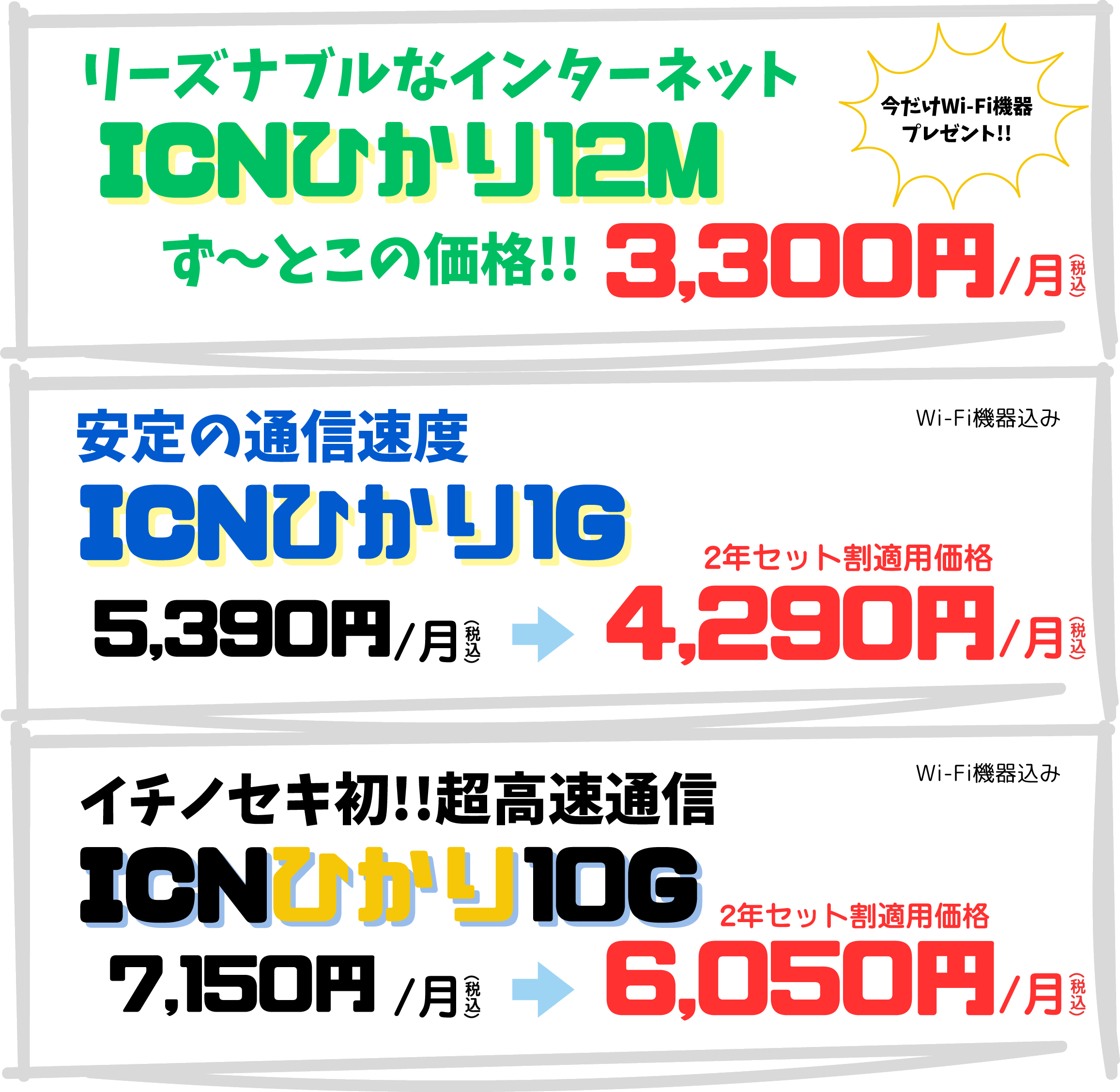 ICNひかり1G、1Gメッシュ、10Gのご利用で